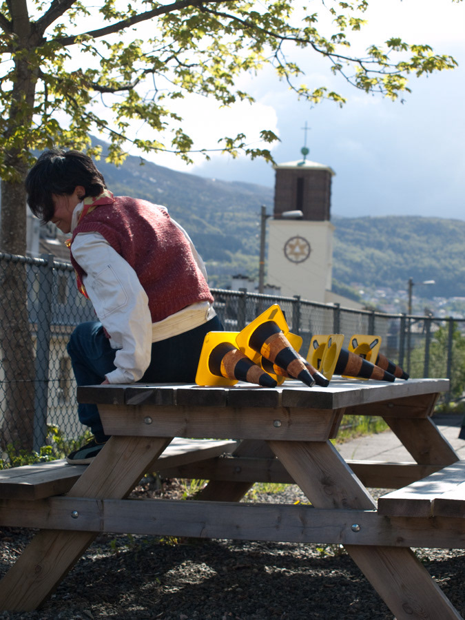 Experiment with sound and cones - collaboration with Thud! Moving Endagered Spaces / Gyldenpris kindergarden, Bergen